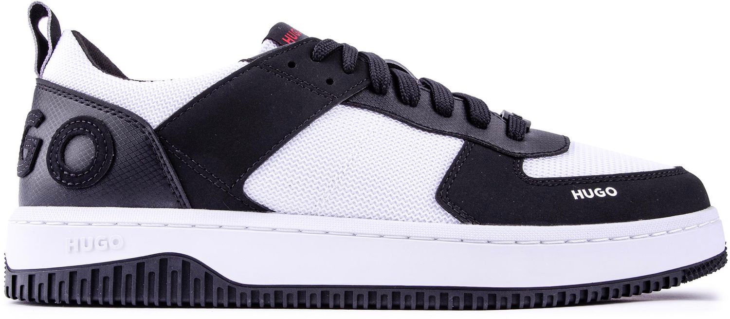 The ultimate balance of sport and style. Here's a pair of black and white men's trainers from HUGO. with a contemporary. fresh designer look and retro vibes. This comfortable. cool streetwear shoe features signature branding and the Kilian Tenn quality.