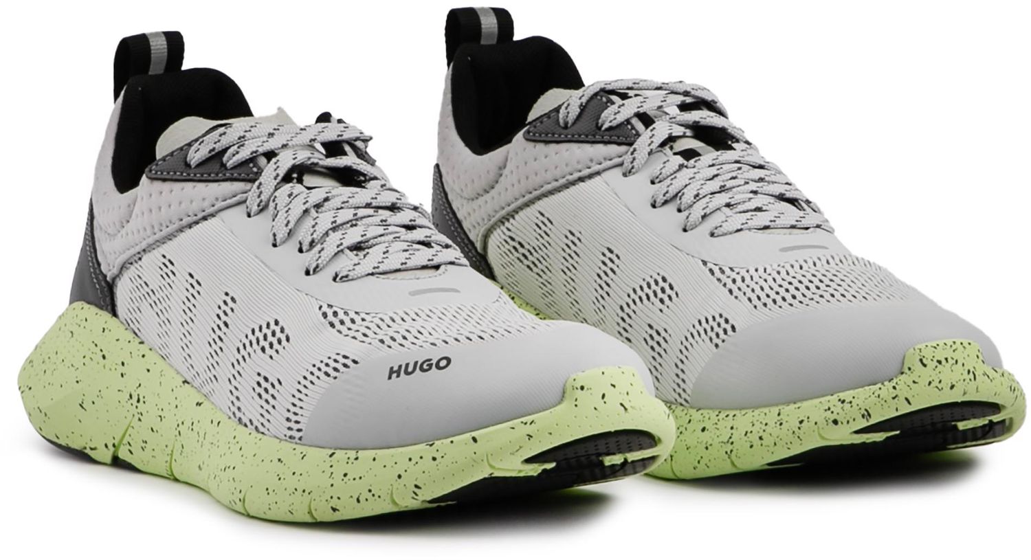 These HUGO Wayne Runn trainers are crafted from fine materials. featuring a classic running style silhouette with a nylon mix upper. fine detailing and signature HUGO branding. Sporting a padded collar and a striking textured outsole. these designer sport shoes offer great comfort and style.