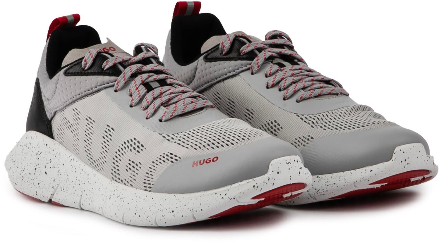 These HUGO Wayne Runn trainers are crafted from fine materials. featuring a classic running style silhouette with a nylon mix upper. fine detailing and signature HUGO branding. Sporting a padded collar and a striking textured outsole. these designer sport shoes offer great comfort and style.