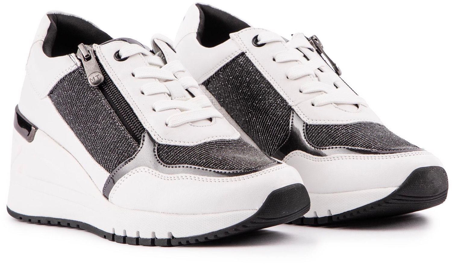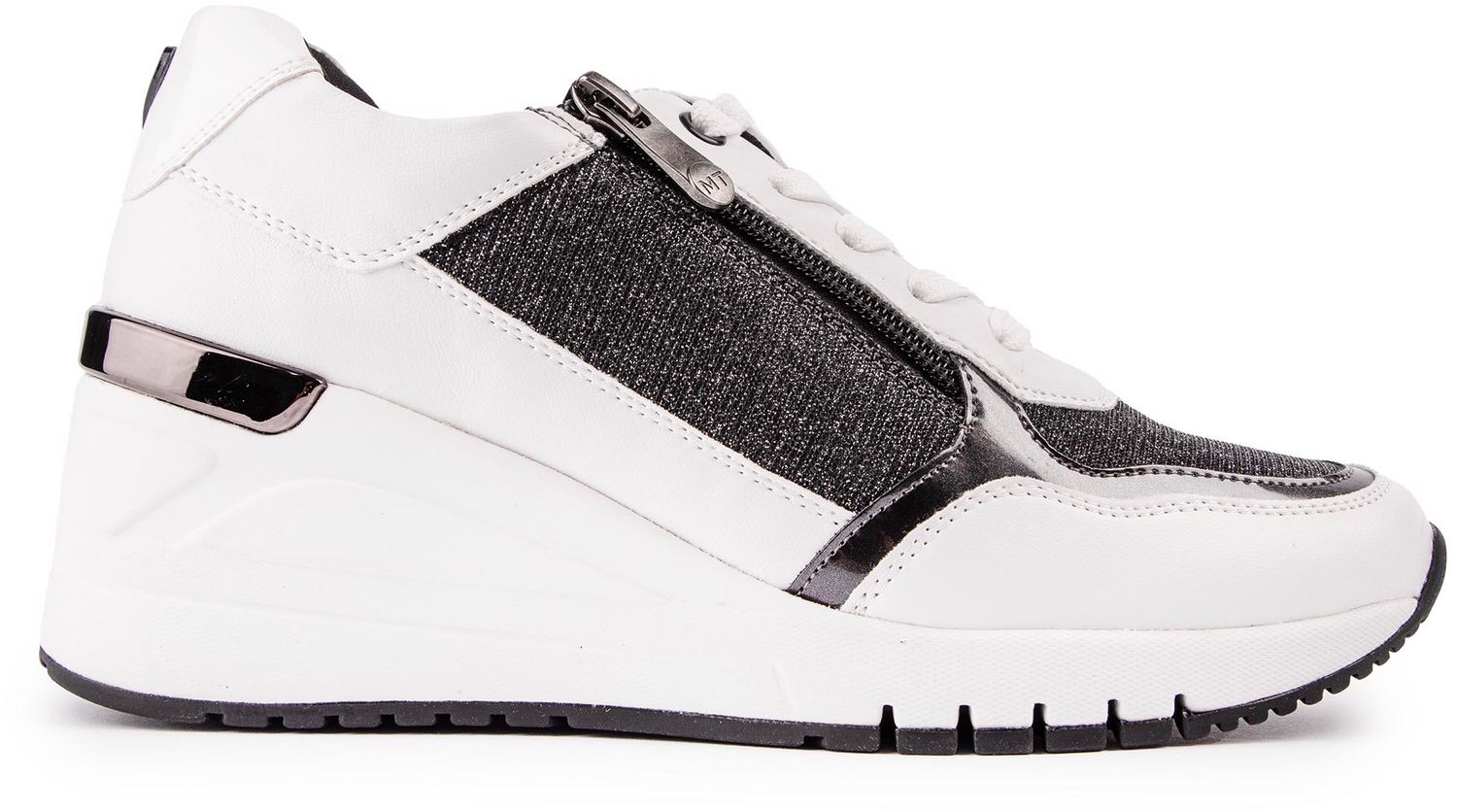 Elevate your style status with these wedge trainers from Marco Tozzi. The zip up white and black high top epitomises sports luxe and is finished with a striking details and metallic accents.