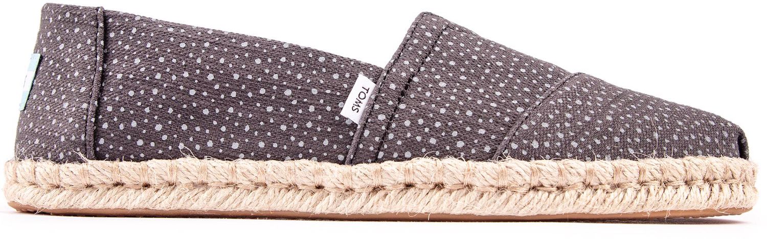 Keep your feet happy, casual and in style with the distinctive TOMS Alpargata women's espadrilles featuring a durable, natural upper with a dotty design and signature branding. The elasticated gusset, Ortholite foam footbed, natural espadrille sole and lightweight construction ensure comfortable wear all day long.